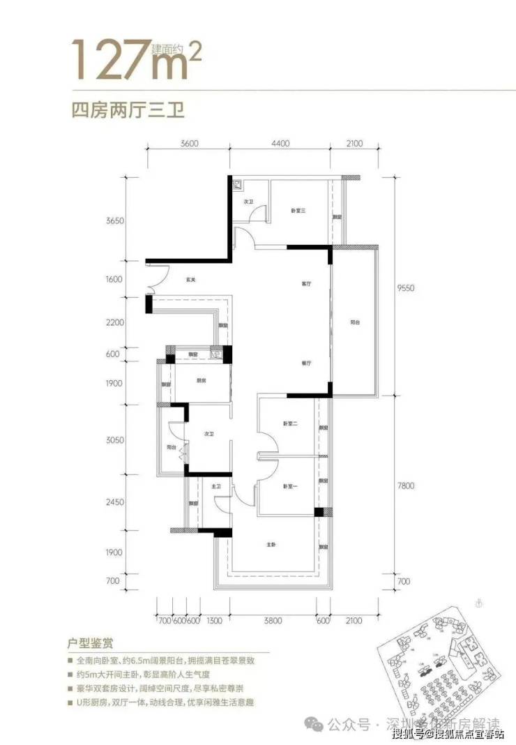 ■127㎡瞰山楼王4房3卫:南北通/全南6开间/一线山景无遮挡