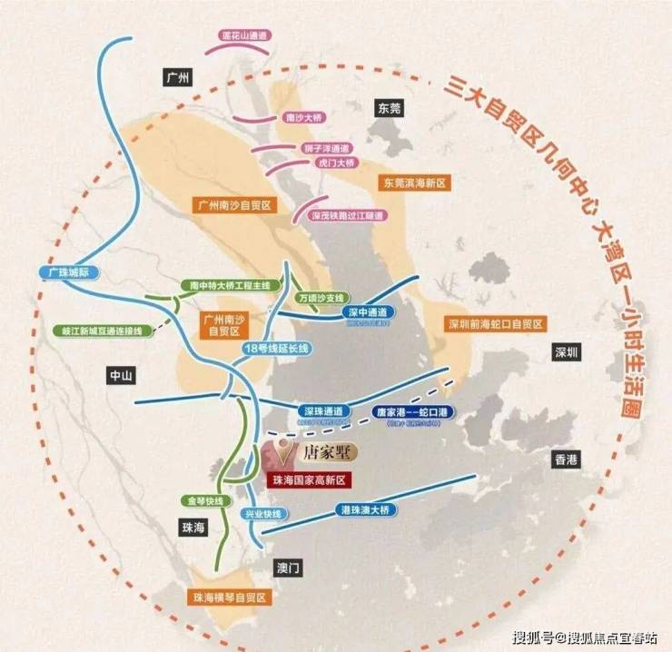 深珠通道接驳处,与深圳前海仅一桥之隔,深中通道、18号轻轨延长线等交通路网,实现珠海横琴自贸区、广州南沙自贸区和深圳前海蛇口自贸区三大自贸区几何中心构建大湾区一小时生活圈
