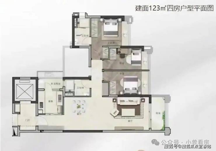 广州城投东园公馆占地面积仅为8470㎡,规划了4栋21-23层住宅,整体容积率高达5.8;其中,南端的4#住宅为回迁房,其余3栋则为商品房,均为塔楼设计。