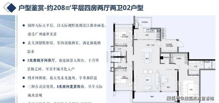 “奢阔尺度” 5米客厅开间,8米南向阳台,双主套双阳台,主卧套房尊享独立衣帽间+卫浴间;