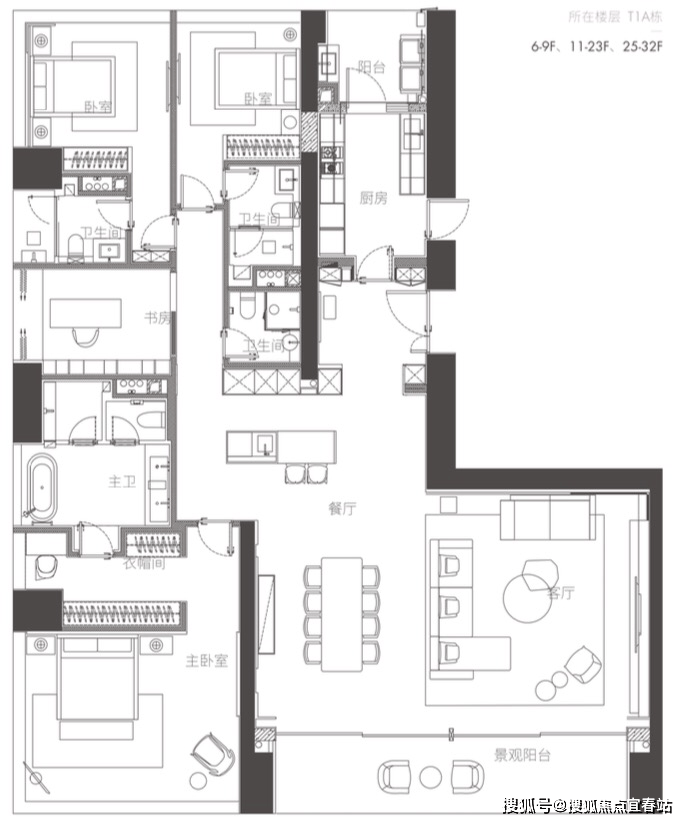 04户型 东端户 约350㎡ 四房两厅四卫(01、04镜像对称)