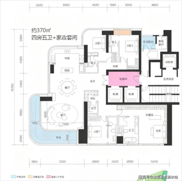 一层两户,奢适大平层:约370㎡的阔绰尺度,保障居住舒适度与私密感。