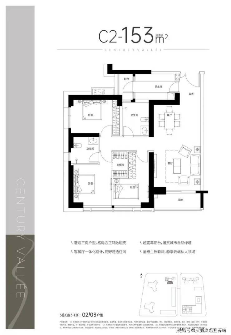 C2户型 约153m² 三房两厅双阳台