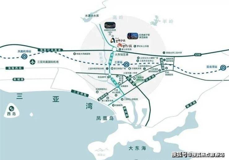 区位交通:项目紧邻育新路,连通鹿城大道、凤凰路等城市主干道,占据火车站与机场之间枢纽位置。距 G98 绕城高速约 1 公里,距三亚动车站约 5 公里,距凤凰国际机场约 14.7 公里,距凤凰国际邮轮港约 10 公里,距三亚湾沙滩约 6 公里。