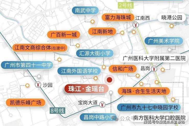 项目对面有昌岗中路小学和海珠江南外国语学校周边还有广州市南武中学、广州市第五中学广州市海珠外国语实验中学等学府。
