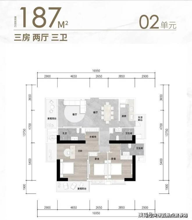 标准层面积:约620㎡ ,户型包括176㎡-187㎡-204㎡-257㎡三至四房