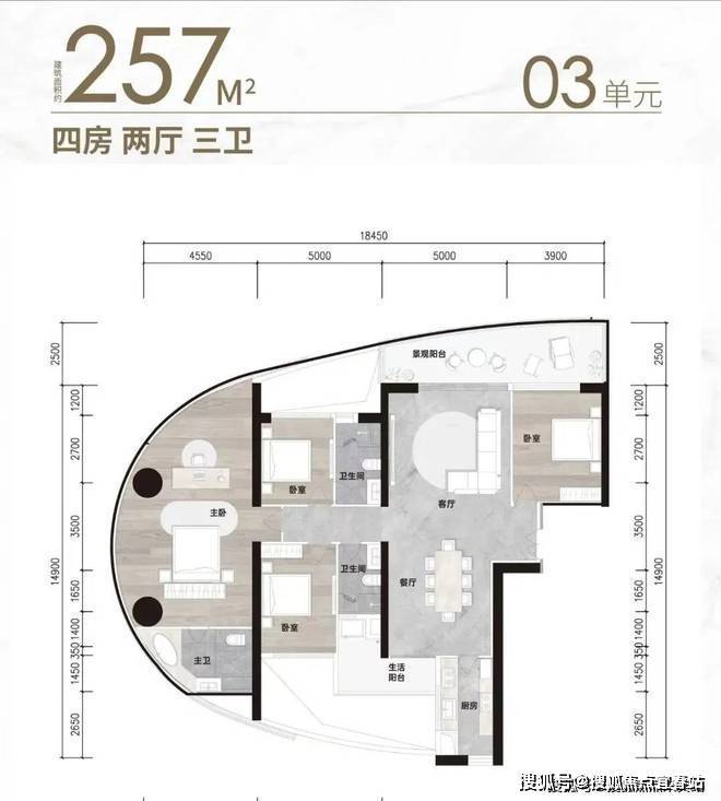 现推售最后一栋超高层住宅A5(51层高),每层约620㎡,户型包括176㎡-187㎡-204㎡-257㎡三至四房大平层江景住宅,符合新政不限购;大部分单套住宅总价介于1300-2000万元,自住投资首选。
