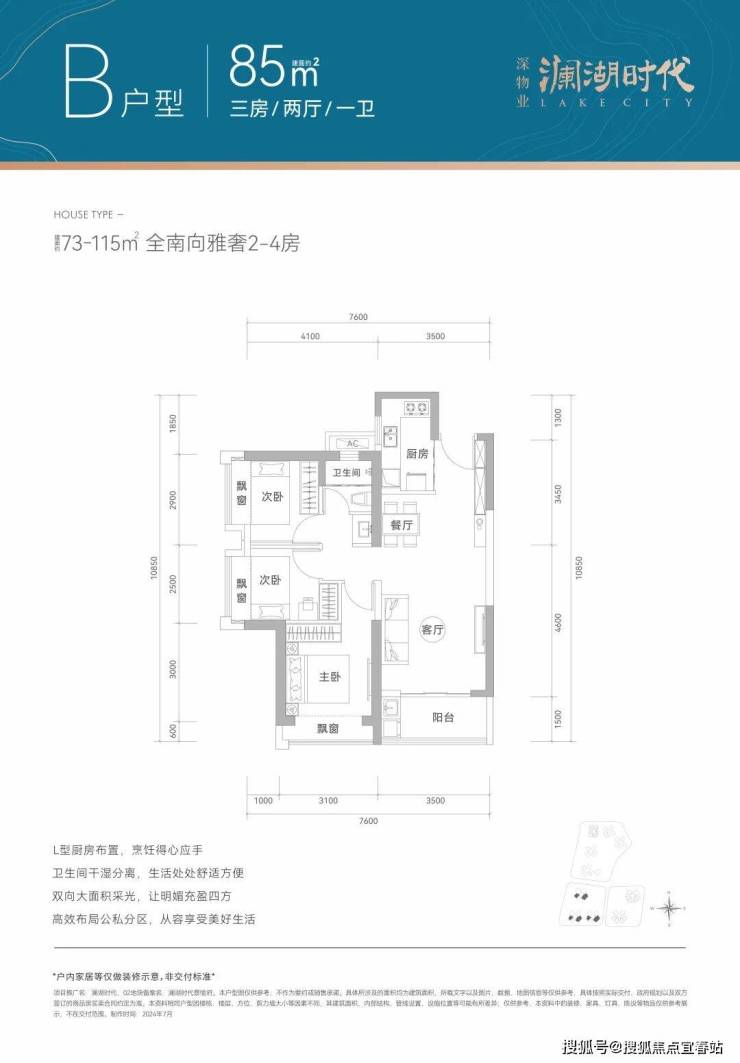 产品面积段:建面约73-115㎡全南宽奢2-4房