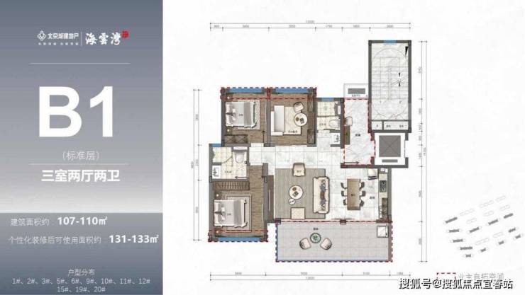 主力户型:107-119㎡三房、132㎡四房