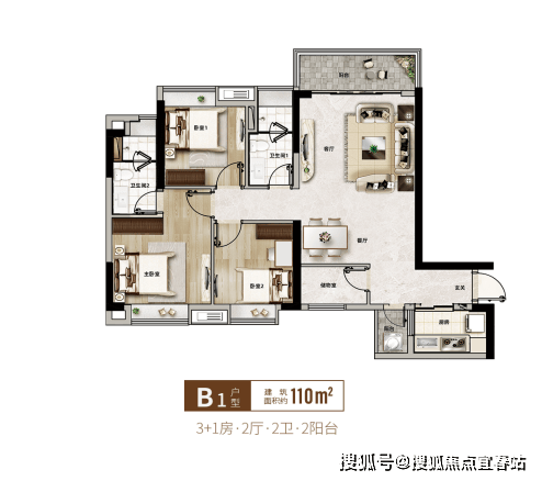 110㎡ 3+1房户型