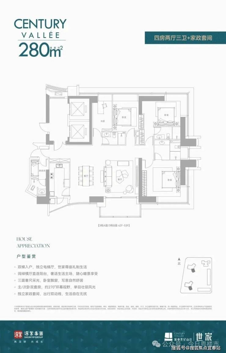 深业世纪山谷世家大平层住宅出售,销售户型233平米,280平米,386平米三至四房和420--1080平云端复式户型