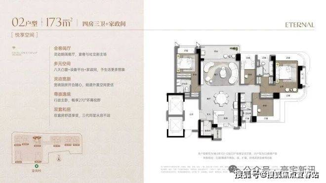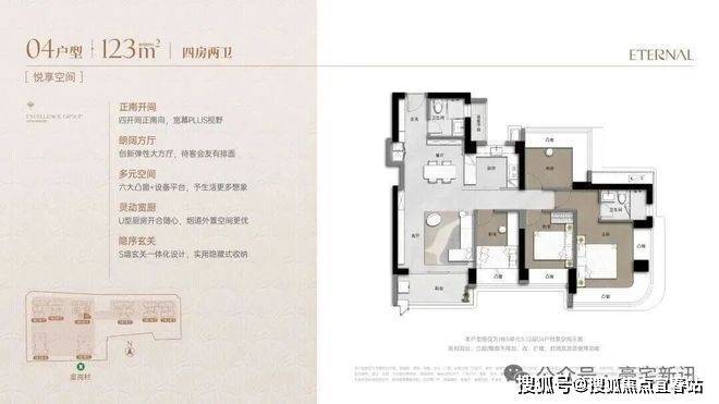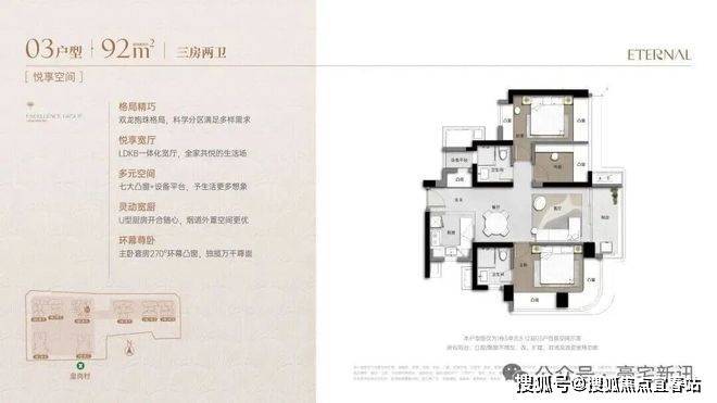 超高使用率90%+:通过“弹性方厅”(可变空间)、设备平台外拓、多飘窗实现。