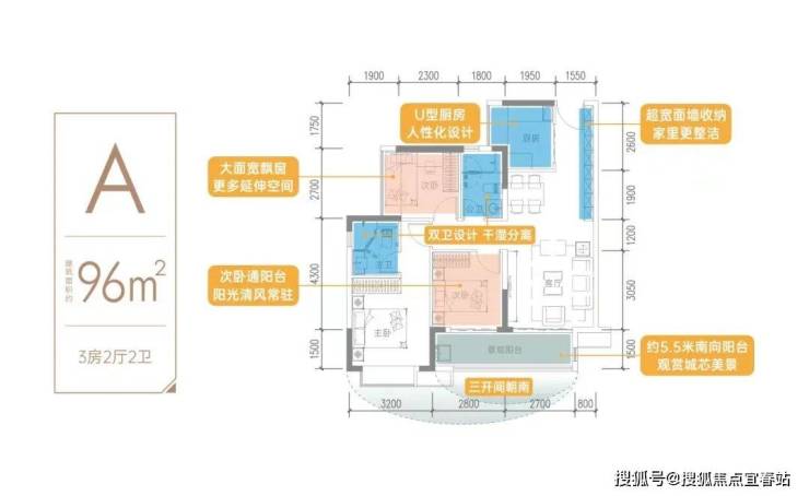 ◎户型面积:约96㎡3房2卫、约121㎡4房2卫
