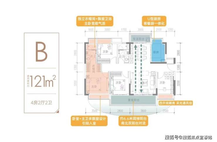 餐厅分区丨约3.8米大开间,南北通透,空气对流