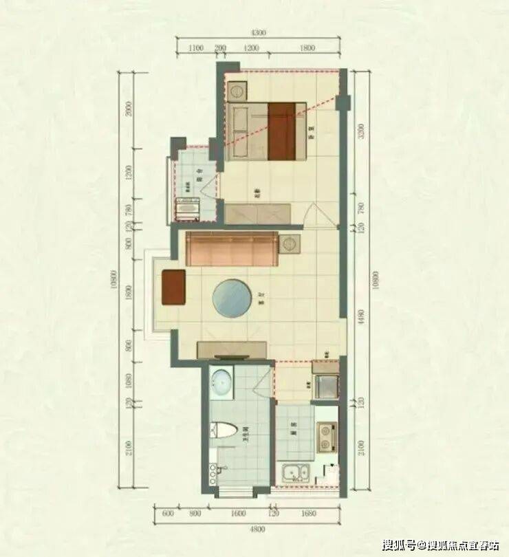 在售户型:44平米舒适一房一厅一卫