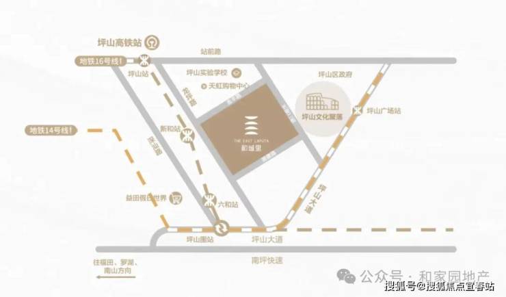 立体多维交通双地铁∶16号线新和站(在建中,预计2023年通车)、14号线坪山广场站(在建中,预计2022年通车)