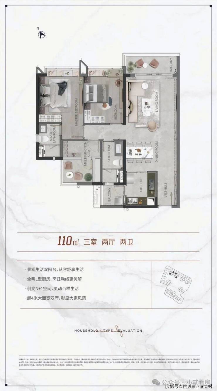 项目在售多种户型。97 平三房,入门门槛友好,次卧采光一般。110 平有 B、C 两种户型,B 户型采光好,C 户型厨房操作台大。131 平有 A、B 两种户型,A 户型三卧室朝南,B 户型望海珠湿地公园景观好。140 平为横厅设计,南北对流,景观和舒适度俱佳。目前价格具有性价比,随着周边配套完善,楼盘价值有望提升,生态环境优质,居住体验佳。