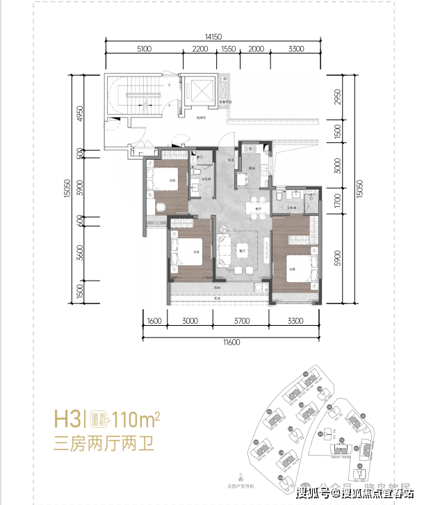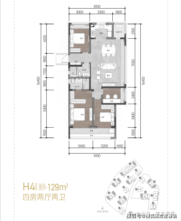 129㎡:四房两厅两卫 14号楼