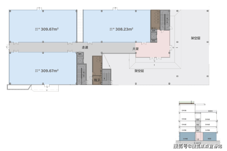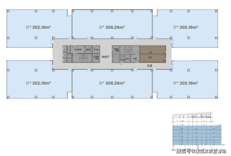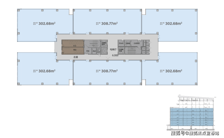 规划6米挑高大堂,以大气之姿彰显企业风范;标准层高3.6-5.4米,突破常规的尺寸。