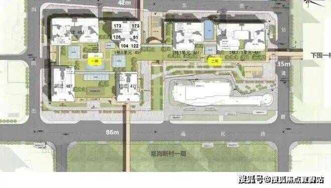 首期地块占地面积约3.1万㎡,总建面约40.5万㎡,其中住宅建面约20万㎡(可售约10万㎡),商业约7万㎡。分为一、二期,合计6座住宅塔楼,两期之间规划了连廊相连,社区相通。