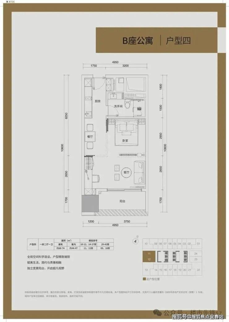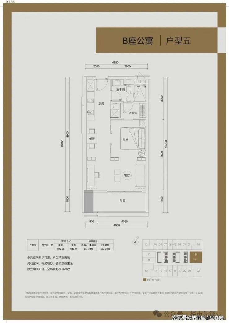 69-71的户型相当于46㎡户型的加强版,具有更尬强的进深,起居空间可具备功能上的划分,但不可完全独立。更大的开间和更大的阳台,舒适度上的提升效果比较好。若是71平的单位来看总价较高,其性价比相对于46㎡户型略显不足。对比77的一房一厅又有功能上的差距。