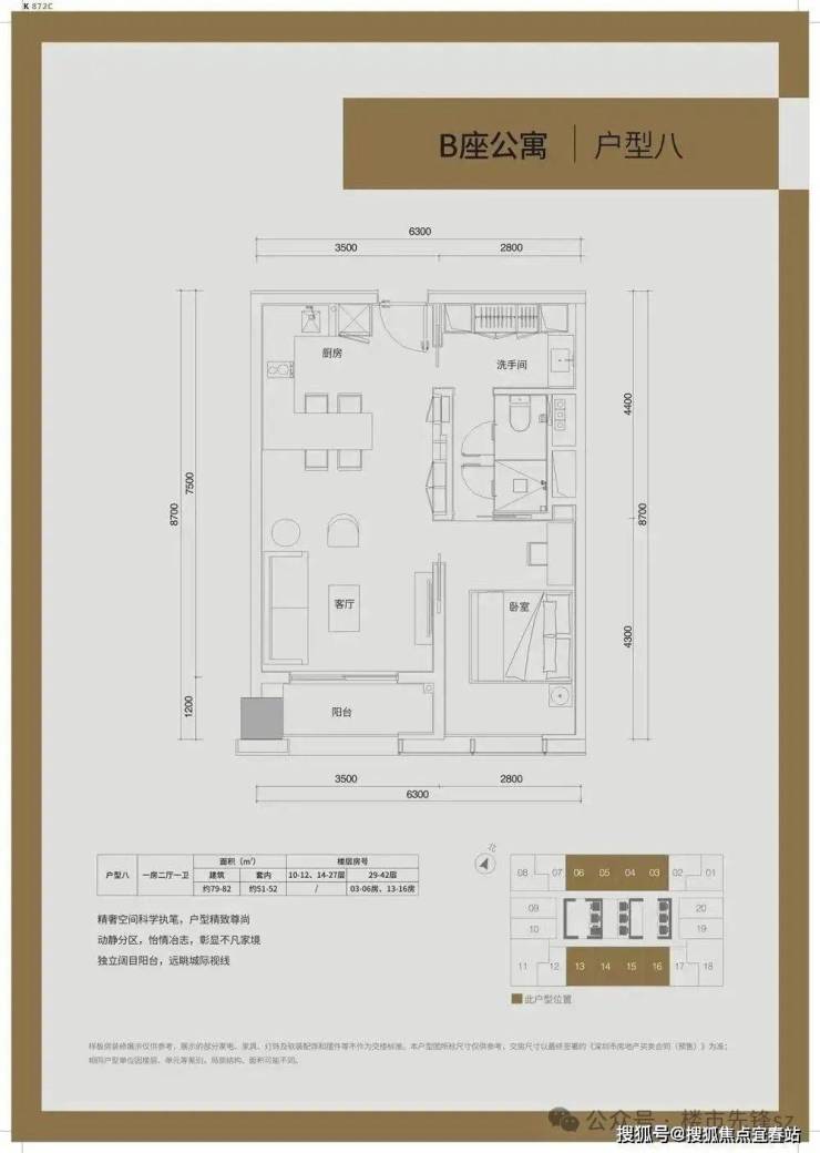 79-86户型,大开间短进深,双面采光效果优秀。功能空间独立性较好,阳台宽大舒适。餐客厅互动能力强动线设计合理,空间利用率好。