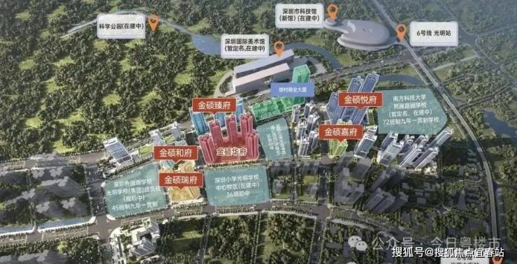 满京华金硕悦府,位于深圳光明区光明科学城“一心两区”的核心区域,紧邻占地208万平方米的科学公园,属于光明规划中“最宜居、居住板块最大”的片区。项目北侧与科学公园仅一街之隔,东、南侧为深圳小学光明学校狮山校区及初中校区,周边市政配套规划密集,如深圳科技馆新馆、国际美术馆等均在建设中,预计2026年前全面落成。
