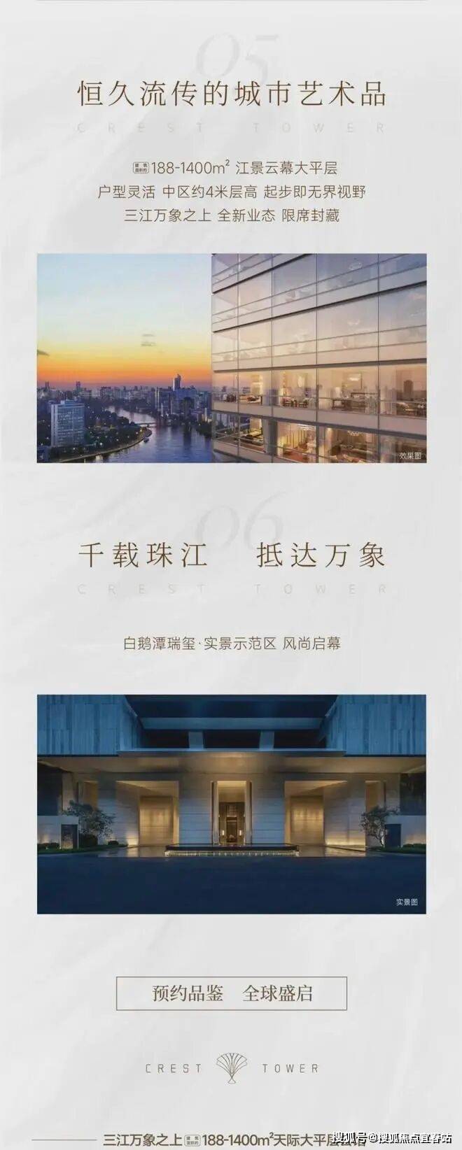 广州白鹅潭万象城之上首个实景展示区——白鹅潭瑞玺内部开放项目主打建面约188-1400平的天际大平层公馆