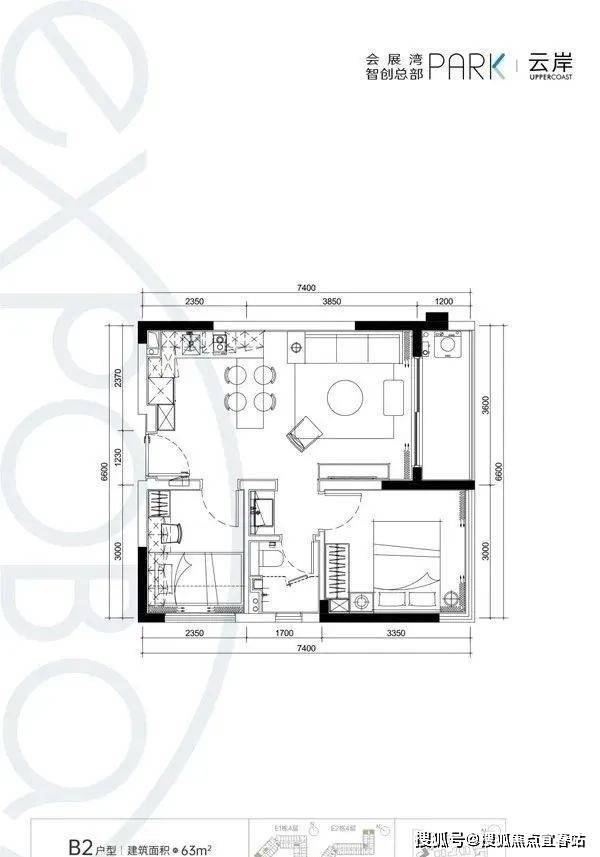 【B2户型:63㎡】房型:两房一厅一卫朝向:E1、E2(西南、东南)户型优势:端头位、双面采光、无敌景观