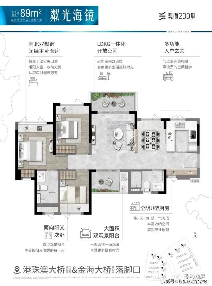 观海200里,择址全国最具发展潜力的城市群·粤港澳大湾区,在湾区九城中,独与香港、澳门路桥相连的珠海未来城市新中心——横琴西·滨海商务区,同时拥有路轨空三大立体交通网络,及拥有三面环海、天然海岸线、沙滩湿地等不可复制海岸资源的半岛地块,打造一线看海的海居3.0产品。