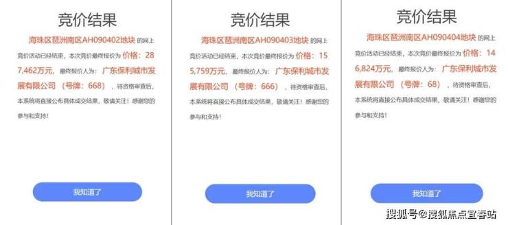 2024年10月30日,保利成功以底价摘牌海珠区琶洲南区AH090402、AH090403、AH090404地块,三宗地总建面13.8万㎡,总价约59.01亿元,楼面价为4.25-4.3万元/㎡,琶洲南三兄弟由此而生。
