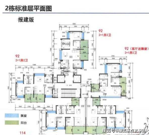 项目主推92-141㎡三至五房,全南向设计,主打高使用率,最高可以达到118%,关键词:110%+使用率、2梯3-5户、全南向