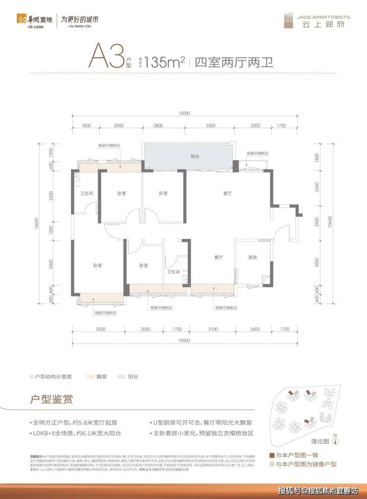 华润云上润府,位于深圳宝安富桥大道与永昌路交汇处东北侧,由深圳运瑞商务咨询有限公司开发。项目占地面积约3万平方米,建筑面积约13万平方米,容积率为约4.2,规划有19~22层的小高层住宅,总户数1191户,其中可售950套。车位比充足,共有1216个车位。项目提供的住宅产品面积为98㎡-135㎡,均为毛坯交付,产权年限为70年。