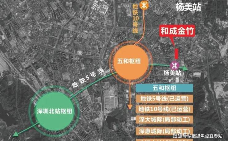 5号地铁线“扬美站”距离约200米,2站到“五和枢纽站”可以换乘10号地铁线/深大城际线,4站到“布吉枢纽站”可以换乘3/14号线,4站到“深圳北站枢纽”可以换乘4/6号线,还有高铁线路。