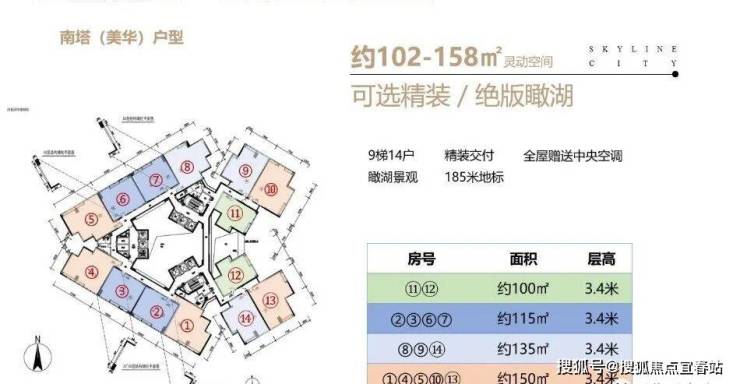 在售面积:75~158㎡(二至四房)
