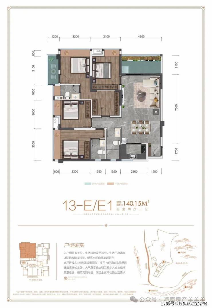 【E户型】建面约140.15㎡四室二厅三卫