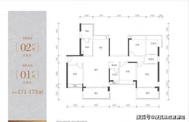 约173平4房2厅2卫(8栋01-02偶数层,9栋A-02奇数层)