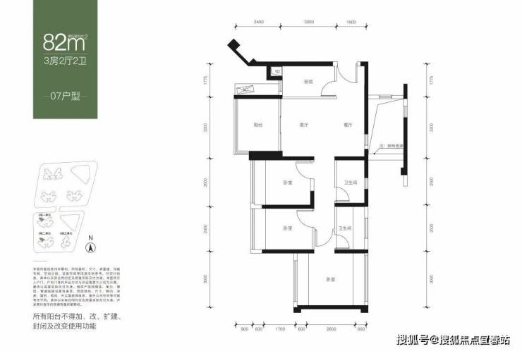 从户型设计看:三房搭配四开间采光面的设计,双面采光使得室内采光透气效果更佳。客厅还做了一个小窗户,可以形成对流。