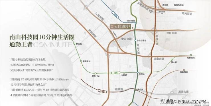 项目距离12号线同乐站直线距离约300米,周边还有在建的15号线同乐关站,贯穿前海、后海、南山、宝安等重要片区,环经济发展核心区域。