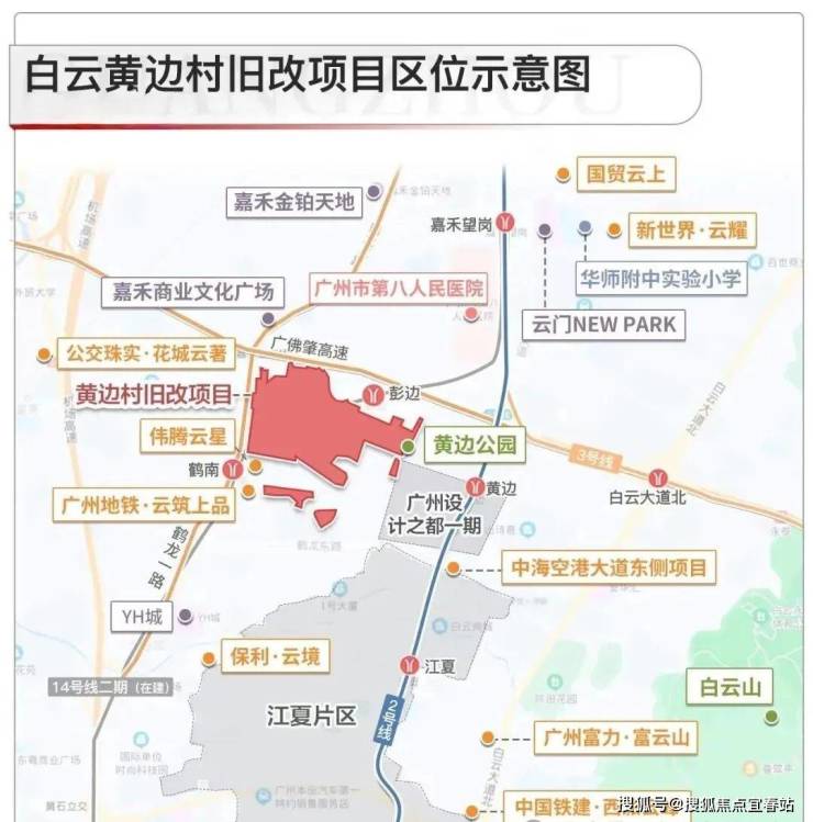 地铁2号线:距黄边站(运营中)直线距离约800m,3站白云新城,直达江南西,广州南。1站换乘嘉禾望岗(地铁2/3/14号线交汇)。