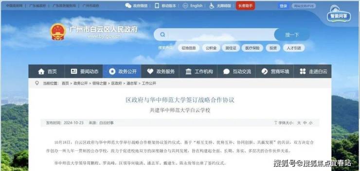 2024年10月18日,白云区政府与华中师范大学签订战略合作协议。