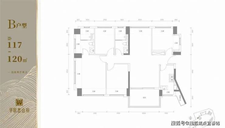 117-120㎡四房两厅两卫(平层):改善主力,南北通透 + 南向三开间,主卧 270° 景观凸窗,四房设计满足多代同堂或 “三孩家庭”。