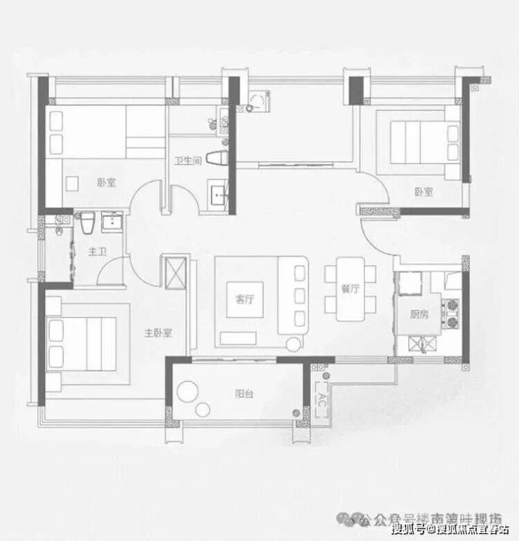 120㎡(3+1)房2厅2卫:横厅设计,客、餐厅约6.4m宽横厅。户型可塑性高,做3房或4房都可以。南北通透,采光与通风佳,客厅与次卧阳台连通,形成约7m景观阳台,推窗即见小梅沙一线海景。