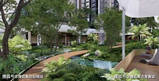 WTD纬图设计的景观,将“秘境雨林”的理念转化为一步一景的沉浸式体验。整体园林以“一轴七景+四重雨林生活”为框架展开。
