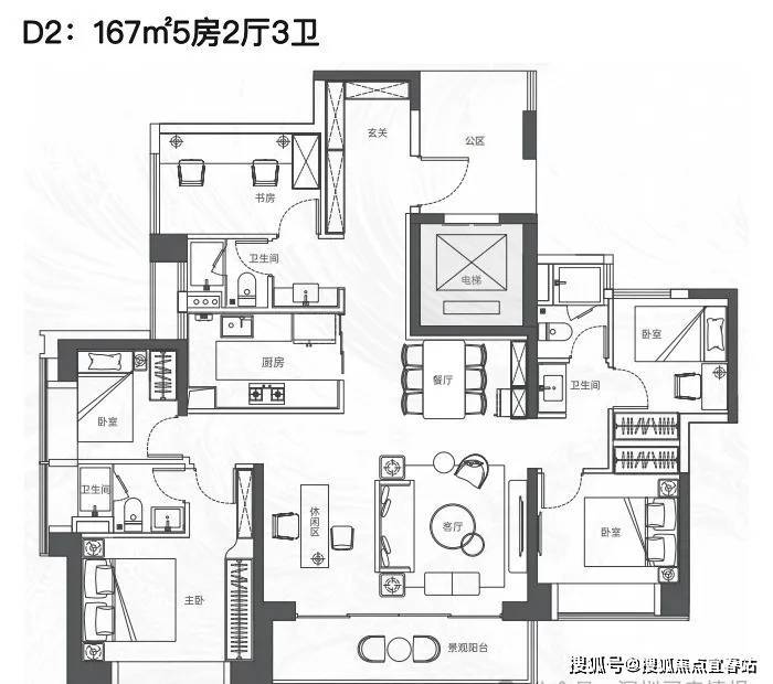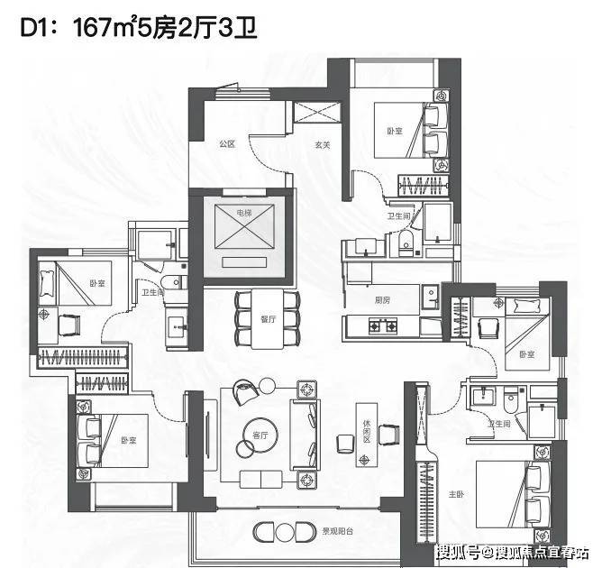 该项目将推出大约380套住宅,建筑规划包括2栋塔楼,其中高区采用4梯4户的设计,低区则为5梯5户,确保了每户都能享有独立电梯厅的配置。
