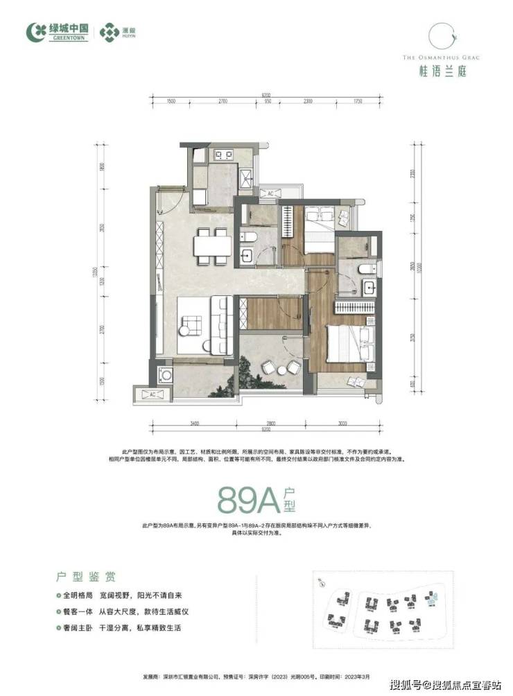 89㎡三房两卫:总价330-366万,单价3.7-4.11万(一期);总价320万起(二期)