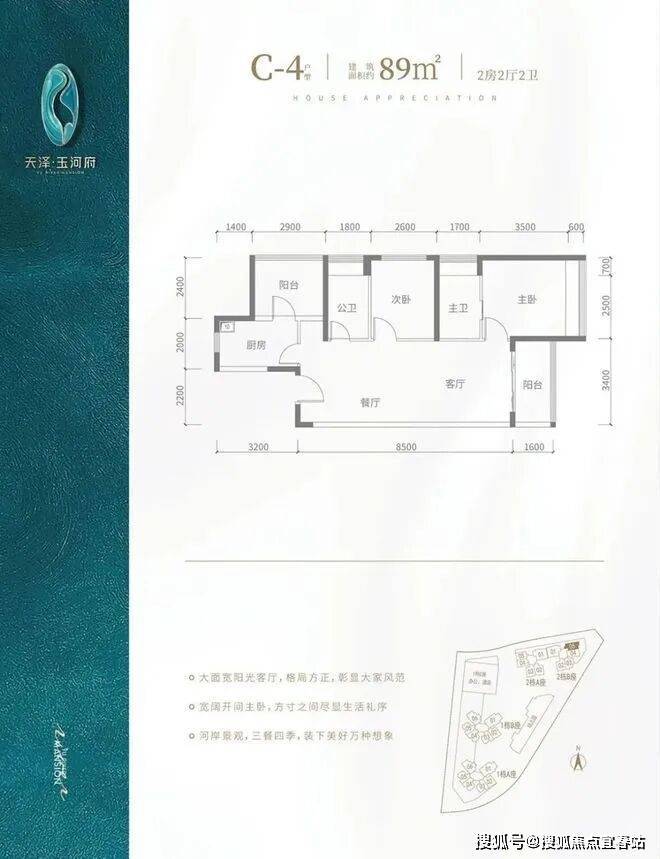 【双阳台·超高实用率户型】V型塔楼布局,南向阳光户型,约80%高实用率,双阳台,光明罕有绝版户型。建面约80-143㎡2-4房河岸美宅,赠送高标准绿建简装,舒适2T5/3T6,向往的生活在这里触手可及。