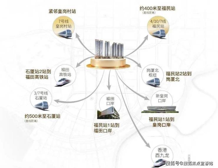 交通:一期楼下就是7号线皇岗村地铁站,4条地铁环绕。一站到石厦可换乘3号线,一站到福民站可换乘4号线,便捷通达全市。另外项目2站可达皇岗口岸,通关直达香港。