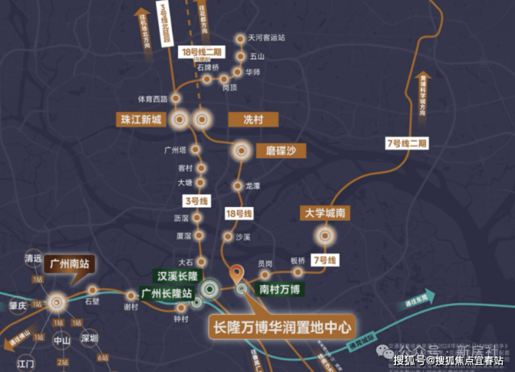 长隆万博片区毗邻广州南站,片区及周边交通纵横交错,地上有番禺大道、南大干线、汉溪大道等主干道环绕,地下有地铁3号线、7号线和18号线等轨道交汇,周边有东新高速、广明高速、京珠高速、南沙港快速等高快速路配套。最快15分钟可通达珠江新城、南沙自贸区和大学城。