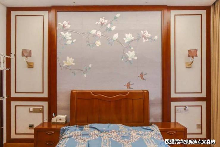 休憩之地本以舒适为上,主卧中大面积的优雅蓝将纯净与深邃的共存表现的恰到好处。以湖蓝色与米黄色做为主调,整个空间看似简单,却在各种不经意的细节里衍生着一种舒适的慵懒。愿你黄昏时归家时,山谷为街,绿径为巷。